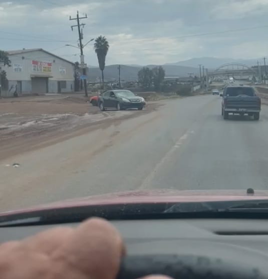 Below is a more accurate tracing of the path just north of the hill. You’ll veer right at the triangular area in the image below. If you see a burning pile of trash on your right, you are in the right area. (Welcome to Baja!) When you reach the end of the triangle you’ll veer slightly left as shown below. (Note that the red line is sloppy at the right side and goes off the road )