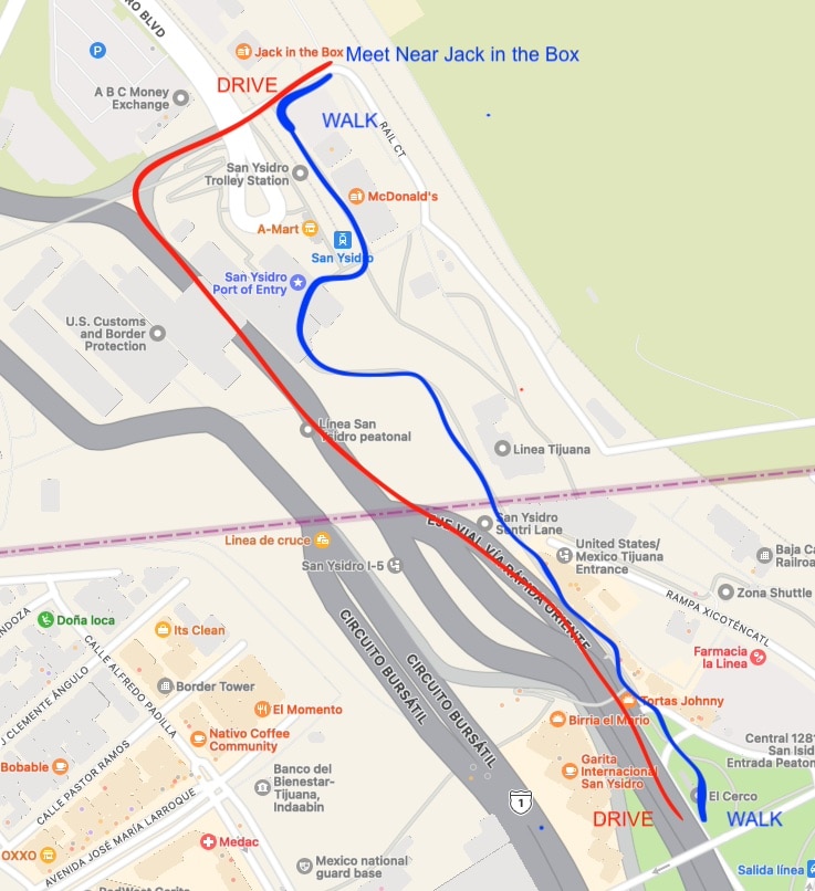 Meet at the Jack in the Box just north of the border.
