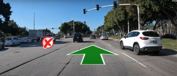 Stay in the middle two lanes which will be bordered by concrete on both sides. (They prevent line cutters! )