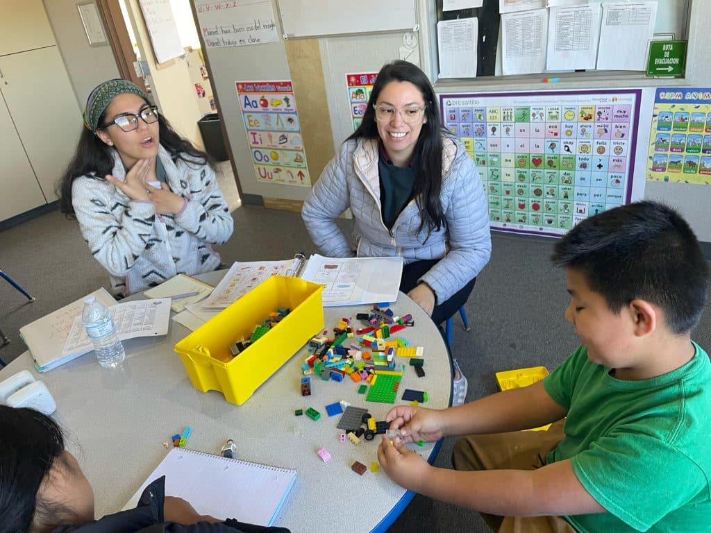 Loma Linda speech therapist speaking Spanish to Brayon who is a student in our program for Autism.