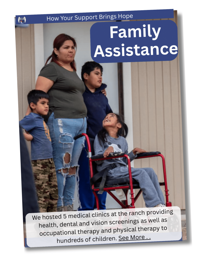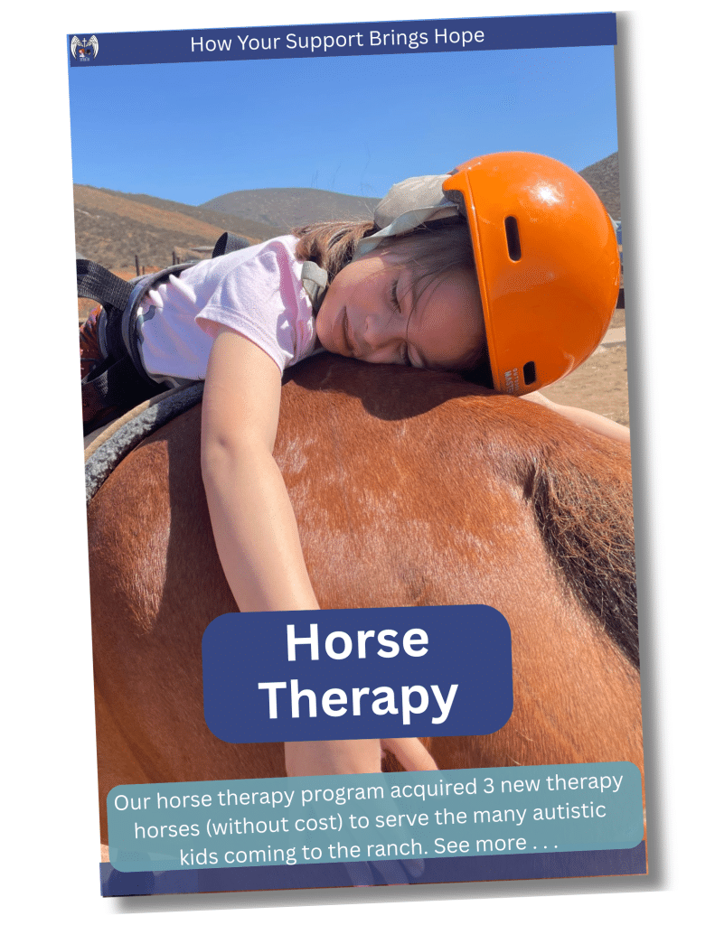 Your support has made all of this possible so that we can do the work of Jesus in serving the poor and disabled. Blessings to you from Sue Fasino, volunteers, supporters and the His Wings Ranch Staff.